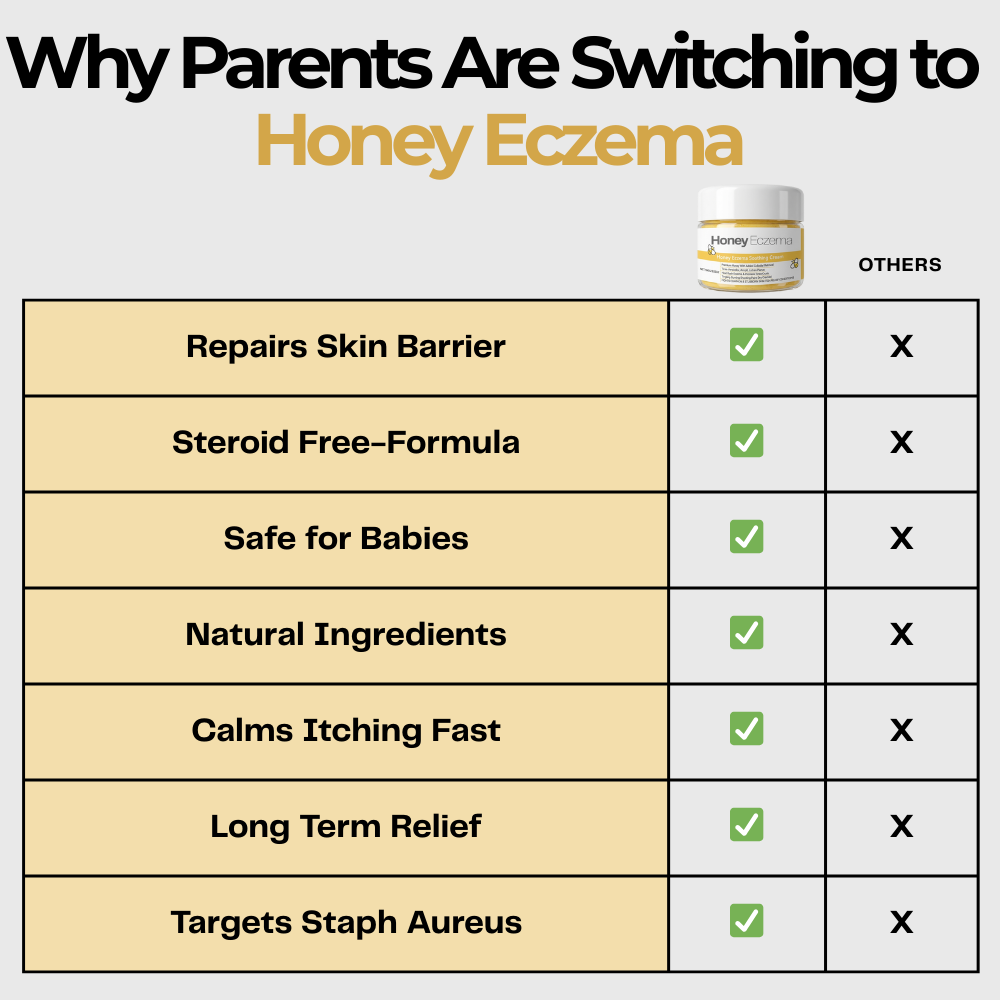 Honey Eczema goes deeper — its medical-grade honey and colloidal oatmeal work to target Staph aureus (the bacteria linked to baby eczema) and support real skin repair, not just temporary moisture.