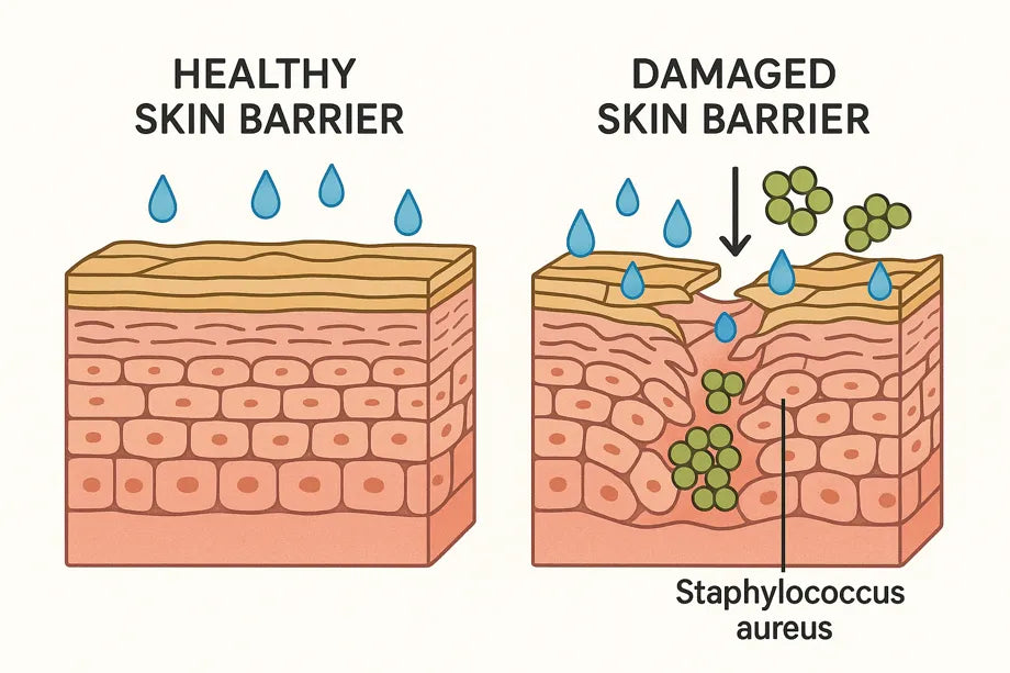 Regular moisturisers—even expensive ones—sit on top of this bacterial film. They might calm things temporarily, but they can't kill the bacteria underneath.